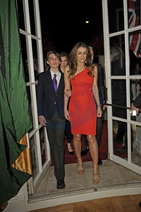 Elizabeth Hurley z synem na The Royals E! Premiere Party