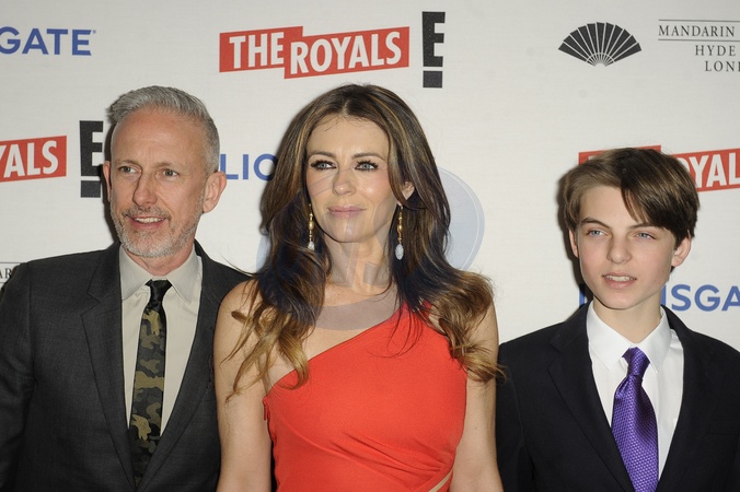 Elizabeth Hurley z synem na The Royals E! Premiere Party