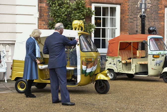 Ksiaze Karol i Ksiezna Camilla podczas przejazdzki riksza