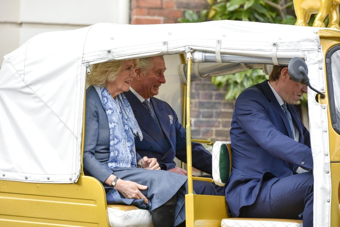 Ksiaze Karol i Ksiezna Camilla podczas przejazdzki riksza