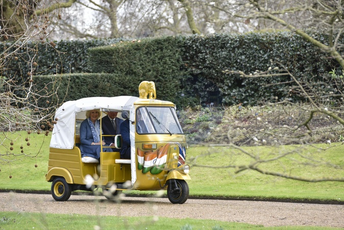 Ksiaze Karol i Ksiezna Camilla podczas przejazdzki riksza