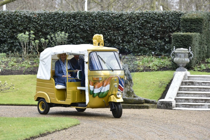 Ksiaze Karol i Ksiezna Camilla podczas przejazdzki riksza