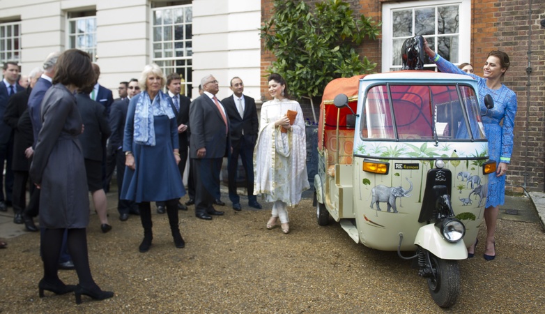 Ksiaze Karol i Ksiezna Camilla podczas przejazdzki riksza