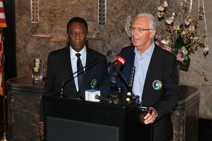 Pele i Franz Beckenbauer na szczycie Empire State Building
