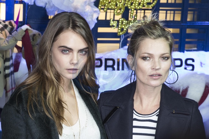 Cara Delevingne i Kate Moss przy odslonieciu witryn swiatecznych, Paryz