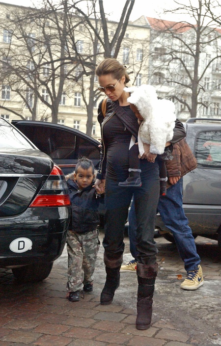 Angelina Jolie zabrala swoje dzieci Maddox'a i Zahare na zakupy do sklepu z zabawkami "Prenzlauer" w Berlinie