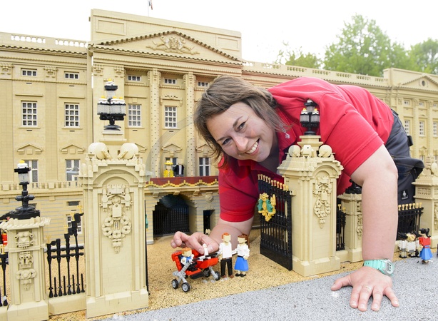 Swiat Lego - Ksiezna Kate i Ksiaze William z synkiem i coreczka przed Palacem Buckingham