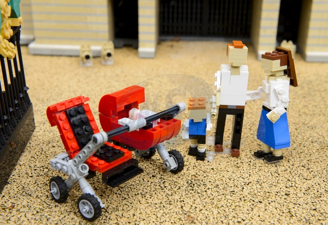 Swiat Lego - Ksiezna Kate i Ksiaze William z synkiem i coreczka przed Palacem Buckingham