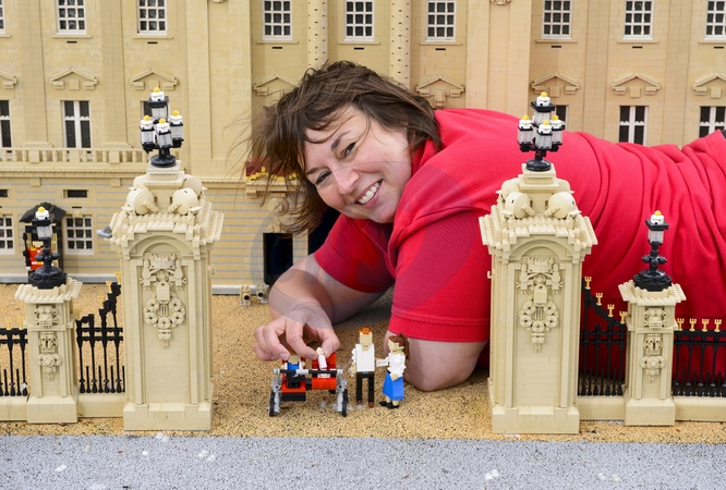 Swiat Lego - Ksiezna Kate i Ksiaze William z synkiem i coreczka przed Palacem Buckingham