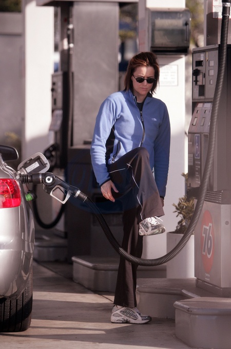 Tea Leoni na stacji benzynowej w Malibu