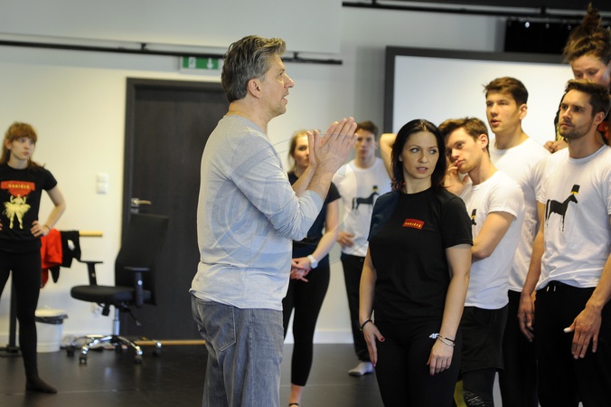 Jozefowicz, Urbanska i Kurdej Szatan podczas prob do musicalu Legally blonde