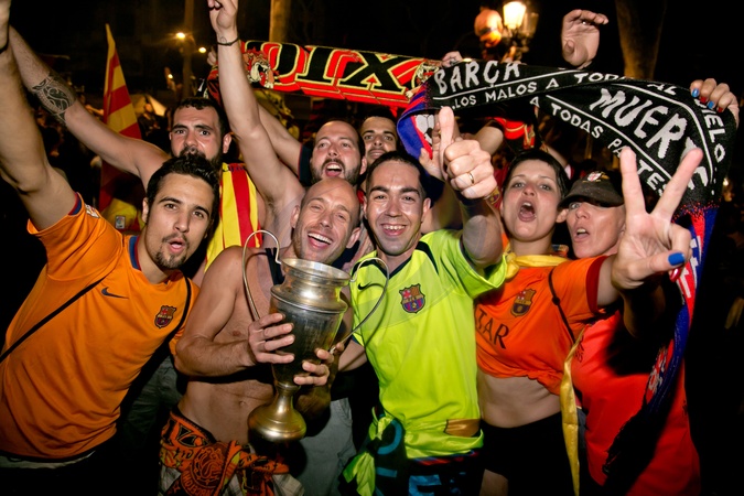 Tak sie ciesza kibice Barcelony - po Finale Ligi Mistrzow