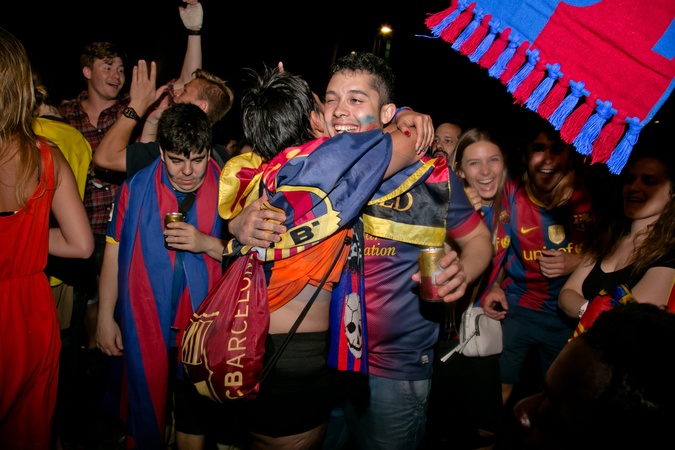 Tak sie ciesza kibice Barcelony - po Finale Ligi Mistrzow