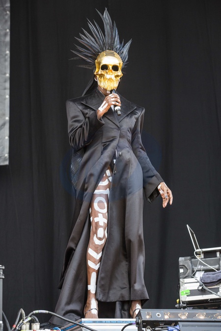 Grace Jones w masce - trupiej czaszce