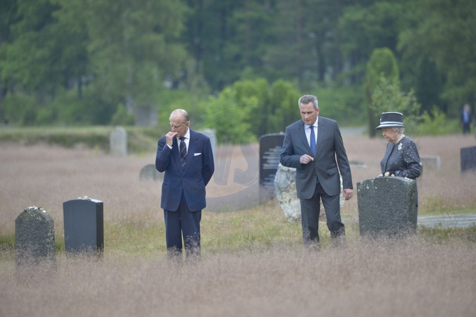 Krolowa Elzbieta II podczas wizyty w niemieckim obozie koncentracyjnym