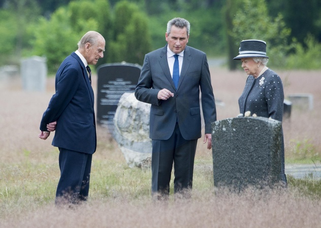 Krolowa Elzbieta II podczas wizyty w niemieckim obozie koncentracyjnym