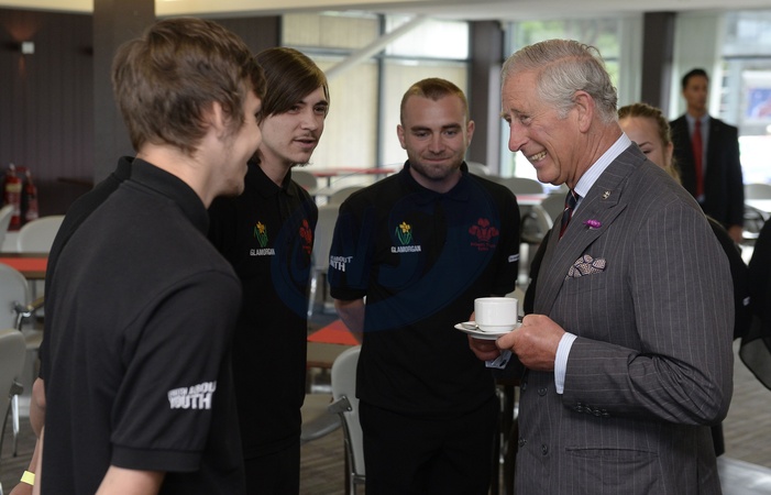 Ksiaze Karol spotkal sie z pilkarzami na SWALEC Stadium