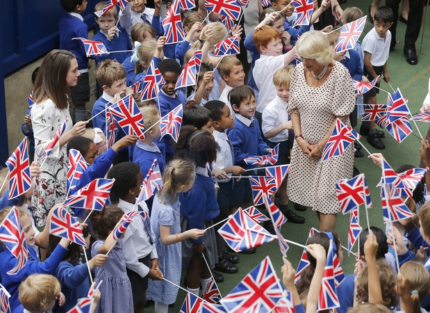 Ksiezna Camilla z dziecmi z St. Peter's Eaton Square Church