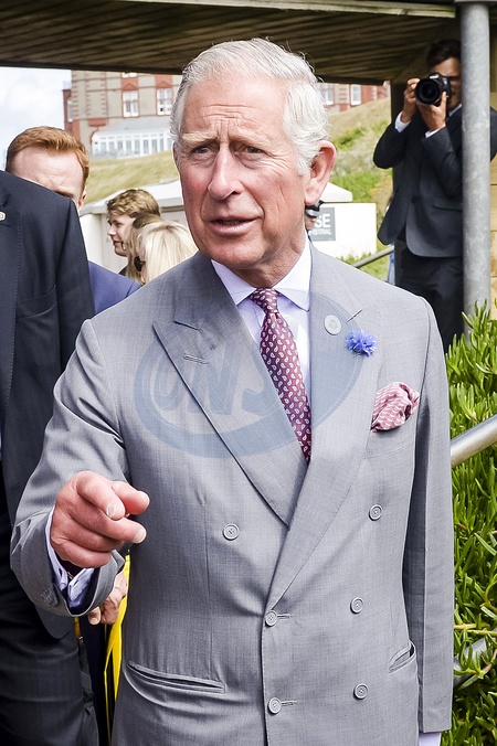 Ksiaze Karol podczas wizyty na plazy w Kornwalii