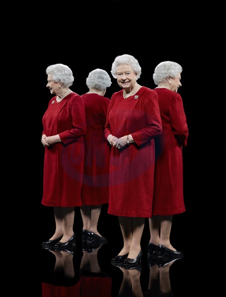 Krolowa Elzbieta II i in. jako bohaterowie lustrzanych zdjec