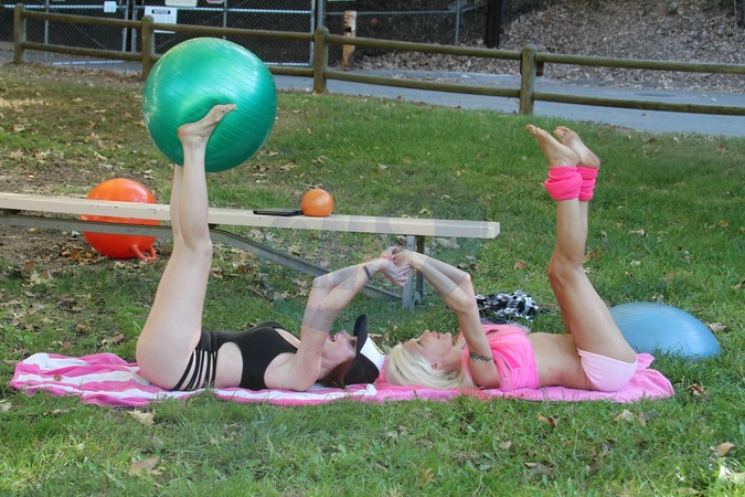 Phoebe Price i Frenchy Morgan podczas gimnastyki