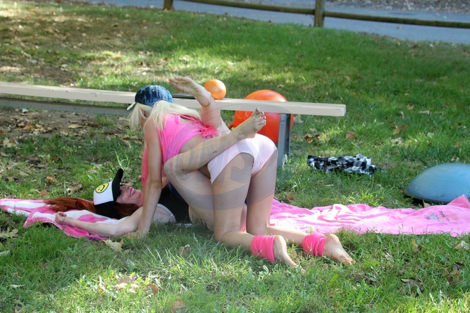 Phoebe Price i Frenchy Morgan podczas gimnastyki