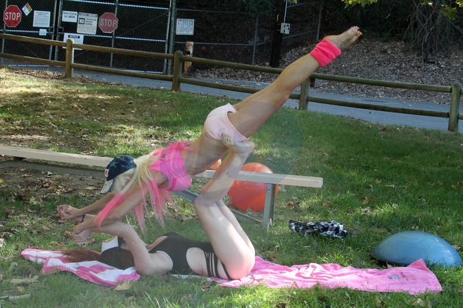 Phoebe Price i Frenchy Morgan podczas gimnastyki
