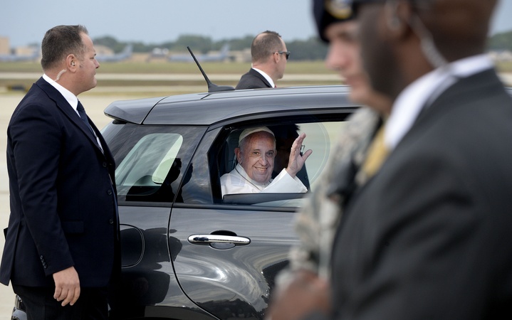Obamowie z corkami powitali Papieza Franciszka na lotnisku