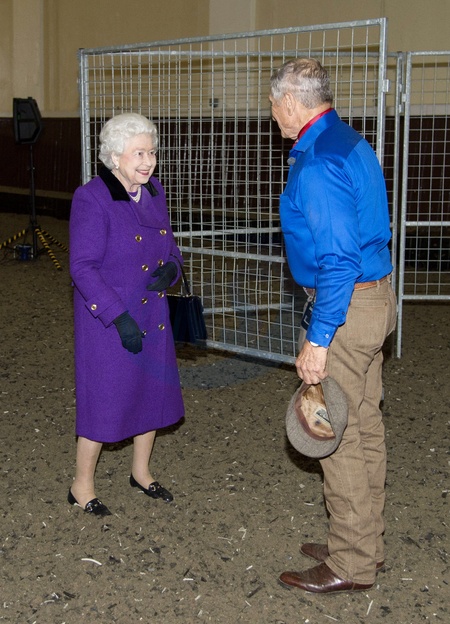 Krolowa Elzbieta II i ksiezna Camilla na spotkaniu z zaklinaczem koni