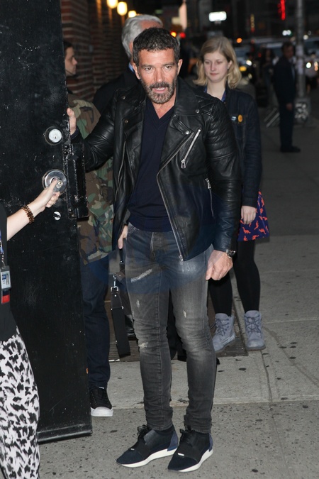 wyluzowany Antonio Banderas w drodze do The Late Show