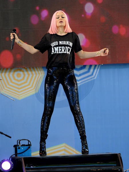 Jessie J w rozowych wlosach na scenie w Nowym Jorku