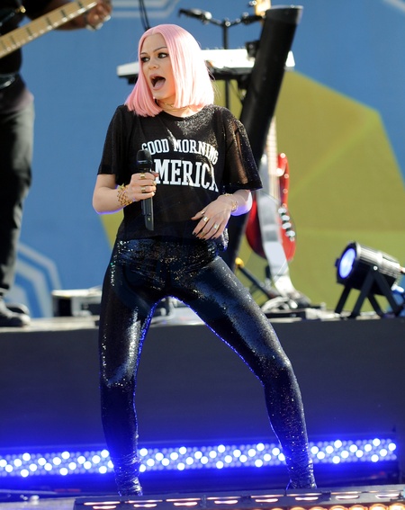 Jessie J w rozowych wlosach na scenie w Nowym Jorku