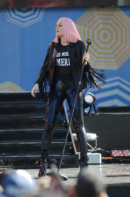 Jessie J w rozowych wlosach na scenie w Nowym Jorku
