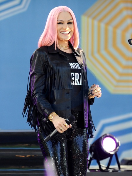 Jessie J w rozowych wlosach na scenie w Nowym Jorku