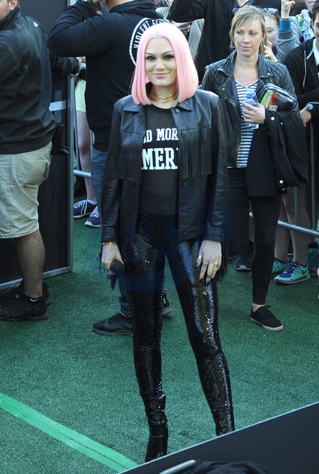 Jessie J w rozowych wlosach na scenie w Nowym Jorku