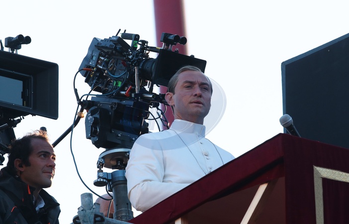 Jude Law i in. na planie serialu Mlody Papiez