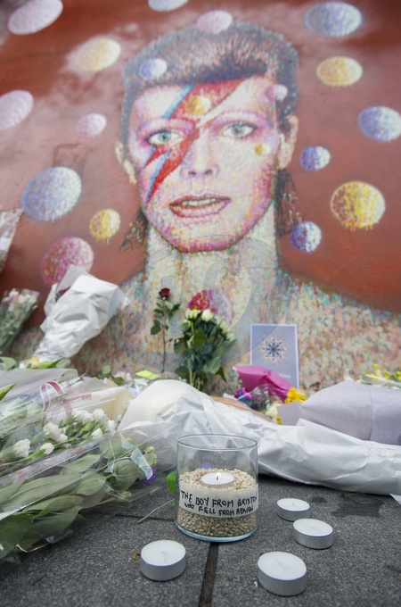 David Bowie - fani przynosza kwiaty