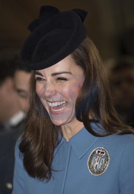 Ksiezna Kate w niebieskiem plaszczyku Alexander McQueen i odznace RAF