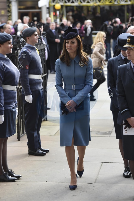 Ksiezna Kate w niebieskiem plaszczyku Alexander McQueen i odznace RAF