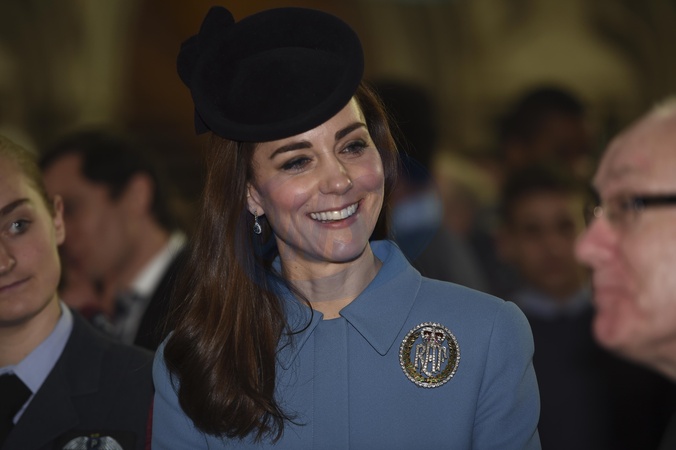 Ksiezna Kate w niebieskiem plaszczyku Alexander McQueen i odznace RAF