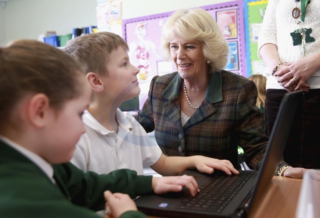 Ksiezna Camilla podczas wizyty w szkole