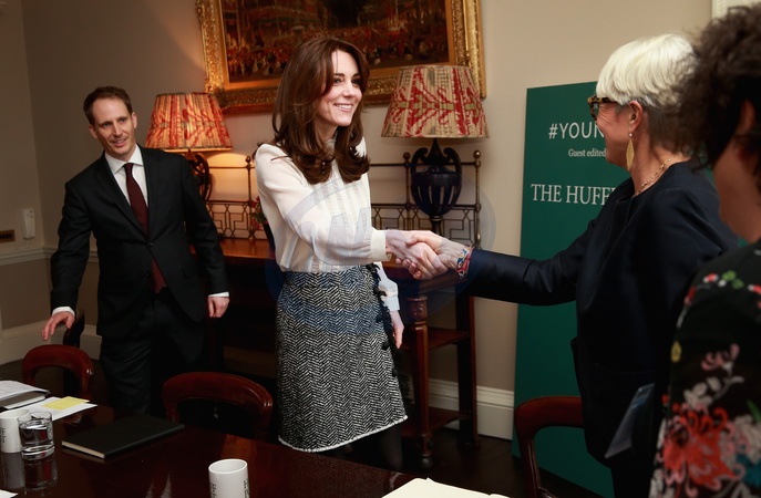 Ksiezna Kate w spodniczce Dolce Gabbana na spotkaniu Huffington Post
