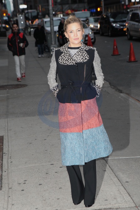 Kate Hudson w kolorowym plaszczu