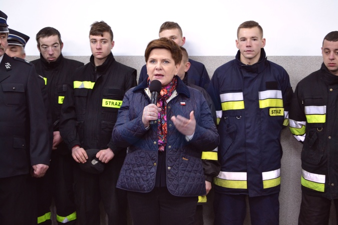 Premier Beata Szydlo na spotkaniu ze strazakami w Uniecku