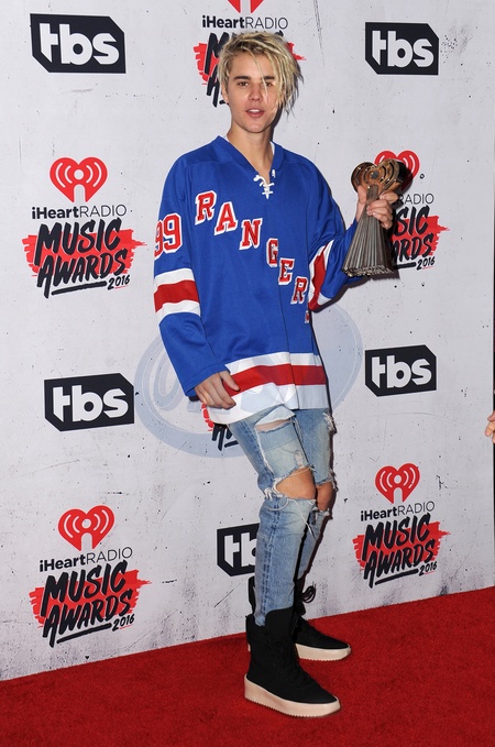 Justin Bieber ze statuetka na iHeart Radio Music Awards