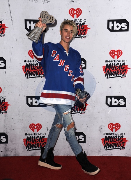 Justin Bieber ze statuetka na iHeart Radio Music Awards