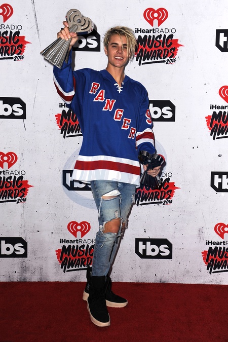 Justin Bieber ze statuetka na iHeart Radio Music Awards