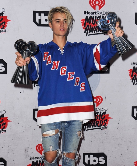 Justin Bieber ze statuetka na iHeart Radio Music Awards