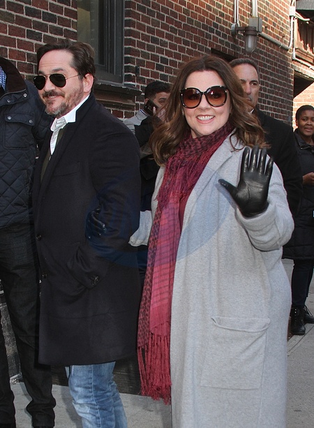 Ben Falcone z zona Melissa McCarthy przed 'The Late Show with Stephen Colbert'