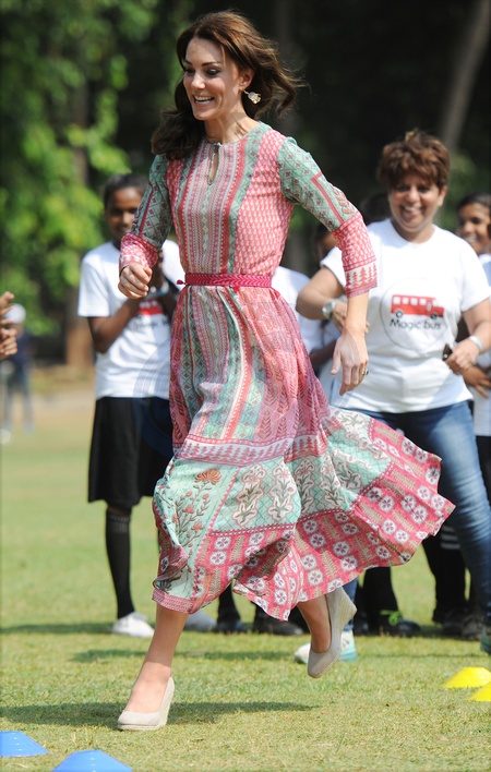 Spontaniczna ksiezna Kate - gra w pilke w sukience i wysokich butach